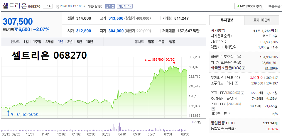 - 2020.07.14 코로나 백신 3만 명 임상.. 화이자 관련주 셀트리온 급등