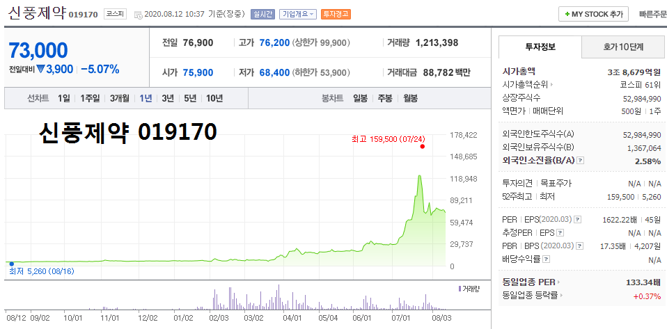 - 2020.08.13 MSCI 지수 편입, 신풍제약 강세