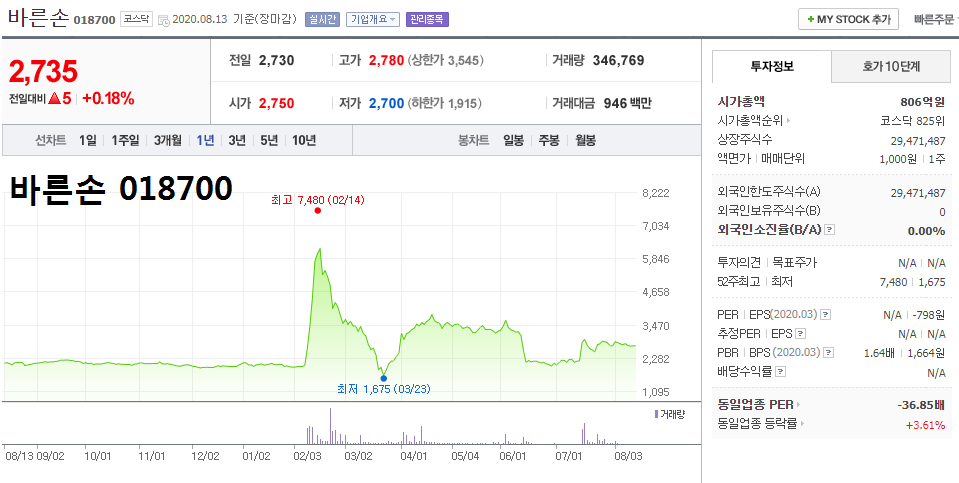 - 2020.07.15 모더나 2만株 보유, 바른손 상한가 직행