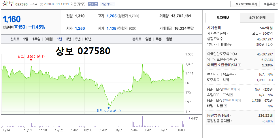 - 2020.05.28 상보, 탄소나노튜브 테마 상승세에 13.62%↑