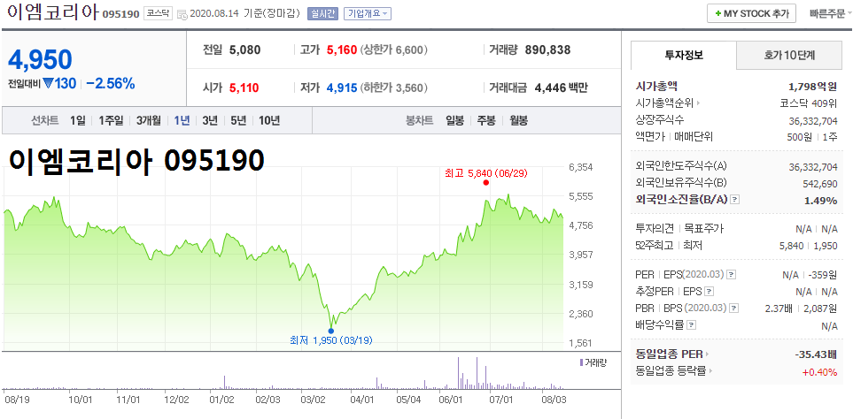- 2020.08.07 이엠코리아, 수소충전소 자회사 효자 될까