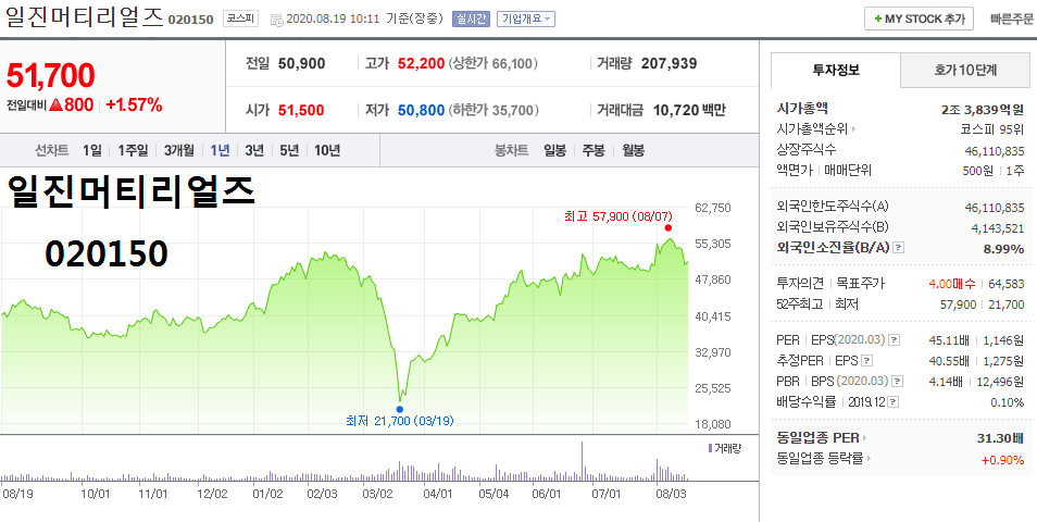 - 2020.06.26 일진머티리얼즈, 일렉포일 부각으로 상승세