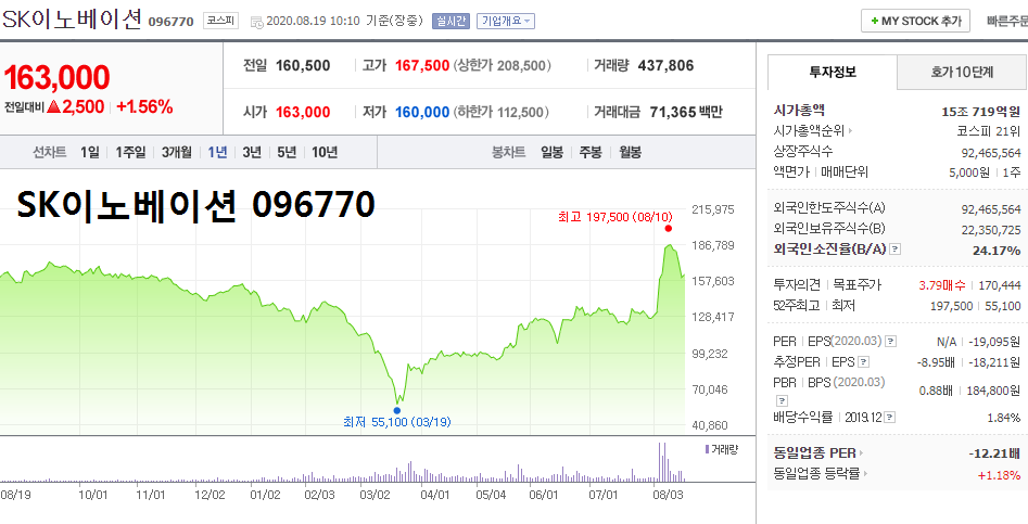 - 2020.08.07 SK이노베이션 겹경사.. 자회사 IPO·2차 전지 기대감