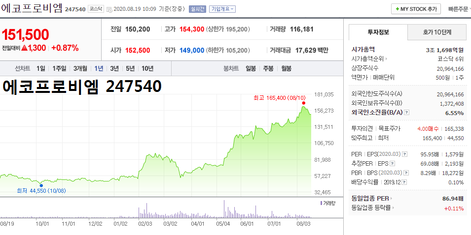 - 2020.08.06 에코프로비엠, EV호조로 어닝 서프라이즈.. 목표가↑