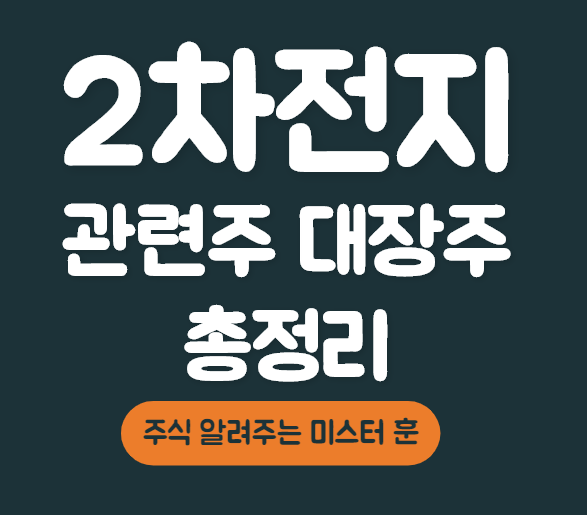 안녕하세요 모두가 부자 되는 그 날까지, 주식 알려주는 미스터 훈입니다. 이번 포스팅은 2차전지 관련주 대장주 종목들에 대해 소개하려고 합니다.