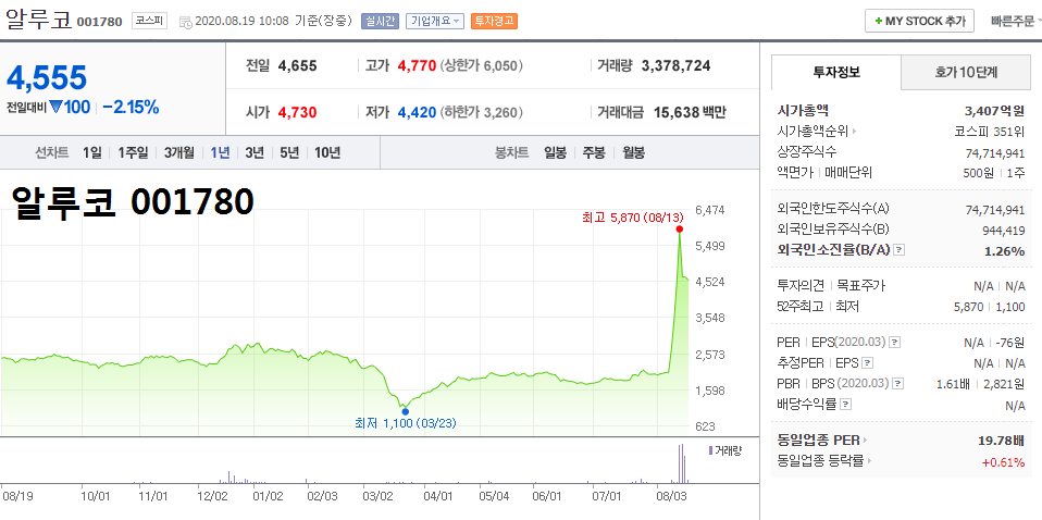 - 2020.08.11 LG화학·SK이노베이션에 전기차 핵심부품 공급, 알루코 상승세