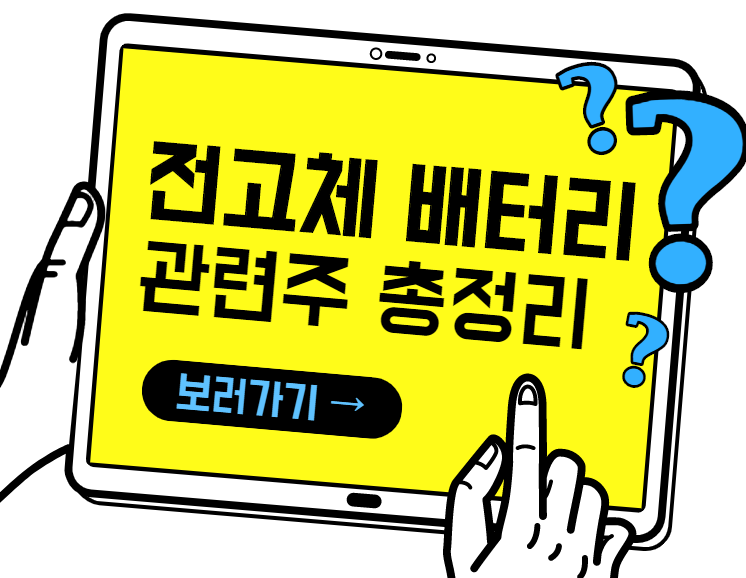 안녕하세요 모두가 부자 되는 그 날까지, 주식 알려주는 미스터 훈입니다. 이번 글은 전고체 배터리 관련주 대장주 종목들에 대해 소개하려고 합니다.