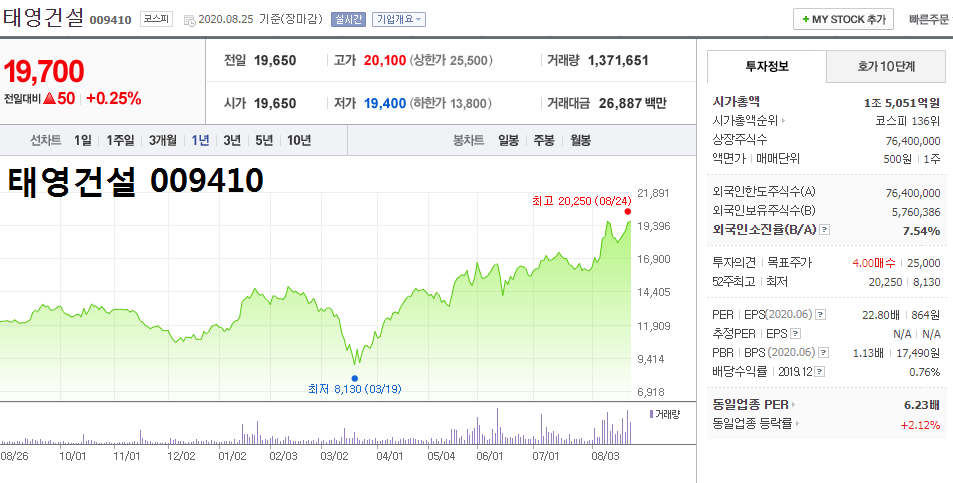 관련주 3. ▲태영건설 009410