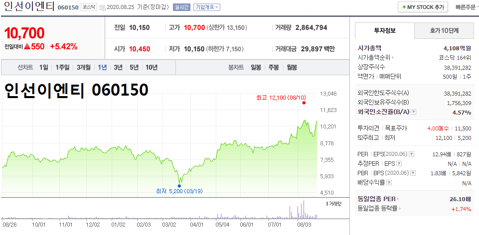 - 2020.08.10 역대 장마에 수혜주 인선이엔티 '강세'