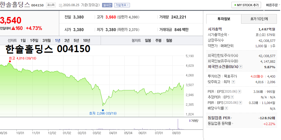 관련주 4. ▲한솔홀딩스 004150