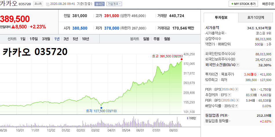 대장주 ▲카카오 035720