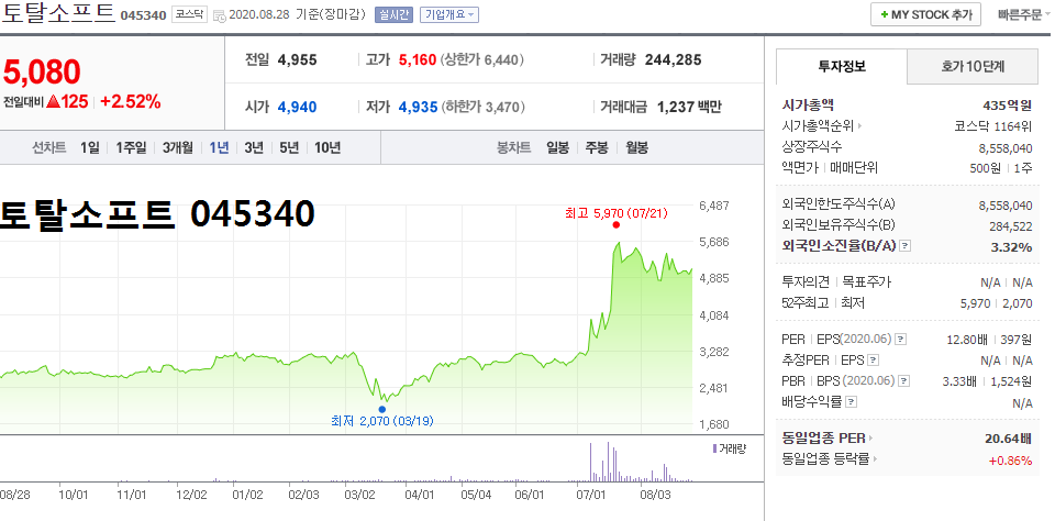 - 2020.07.20 동신건설·토탈소프트 상한가, 정치 테마주