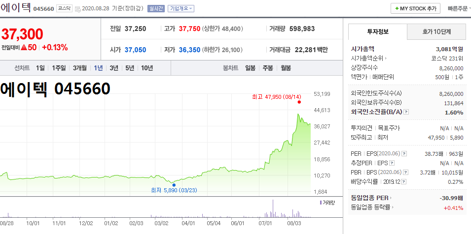 - 2020.08.13 에이텍, '이재명' 본격 대권행보 기대감에 강세