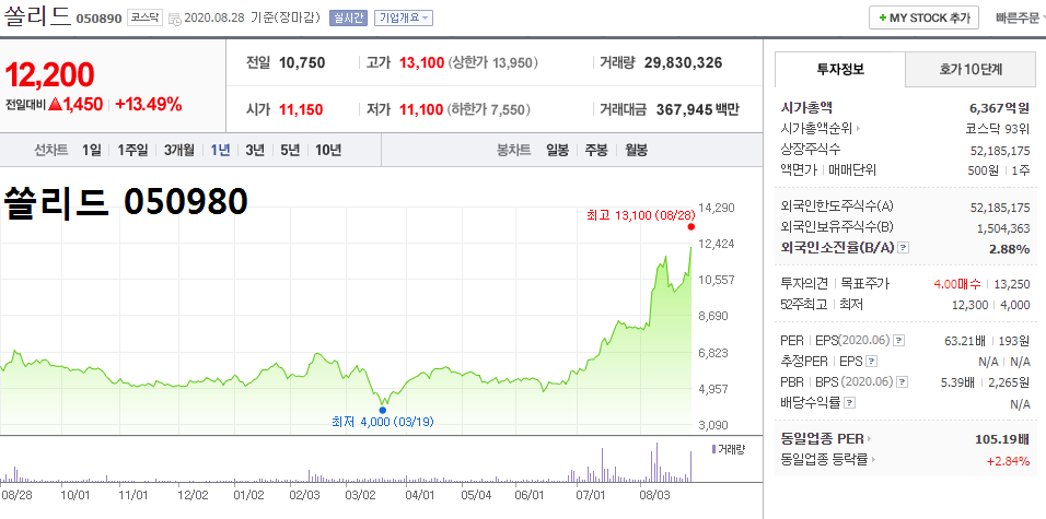 - 2020.08.28 쏠리드, 5G 관련주 상승에 급등까지