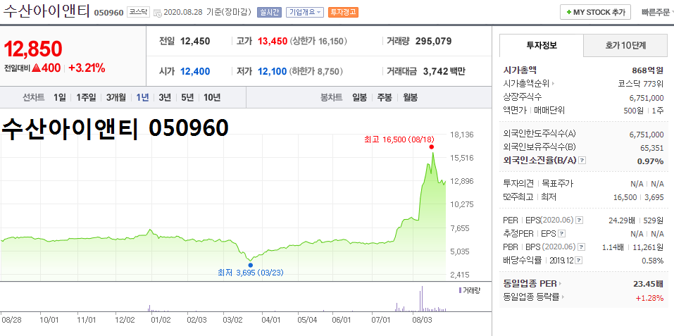 - 2020.08.07 수산아이앤티 상한가, '이재명 테마株' 분류