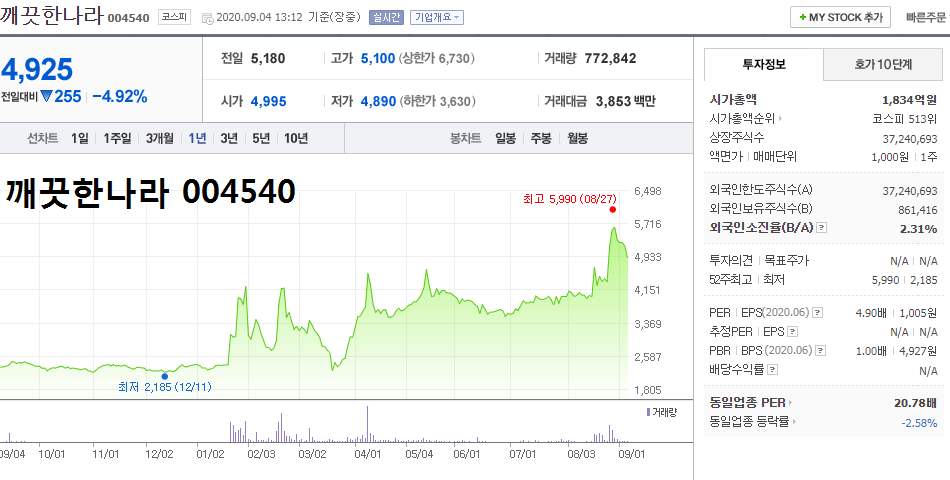 - 2020.08.25 코로나로 인해 마스크, 화장지 수요 증가로 '깨끗한 나라' 3분기 연속 흑자