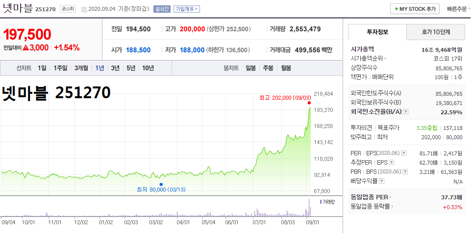 대장주 ▲넷마블 251270