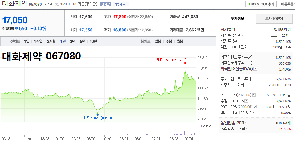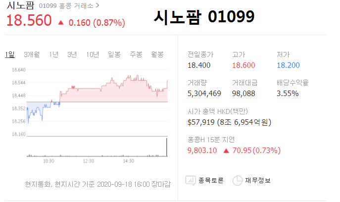 - 2020.09.14 시노팜 관련주, 어떤 게 있나.. 아이큐어, 대화제약, 제놀루션 등