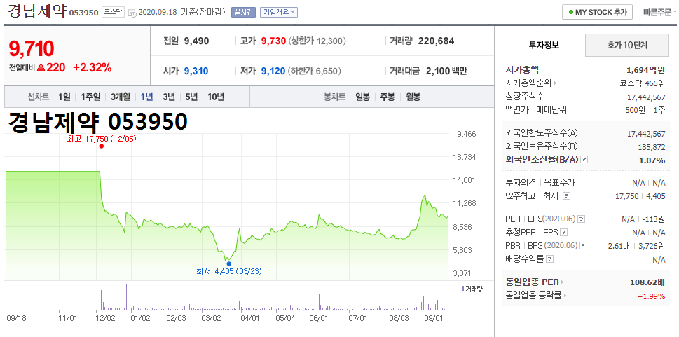 관련주 2. ▲경남제약 053950