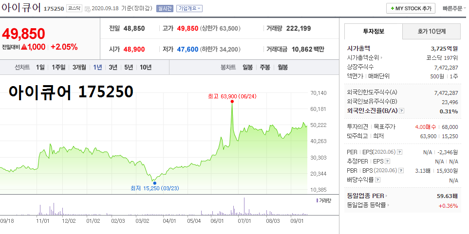 대장주 ▲아이큐어 175250