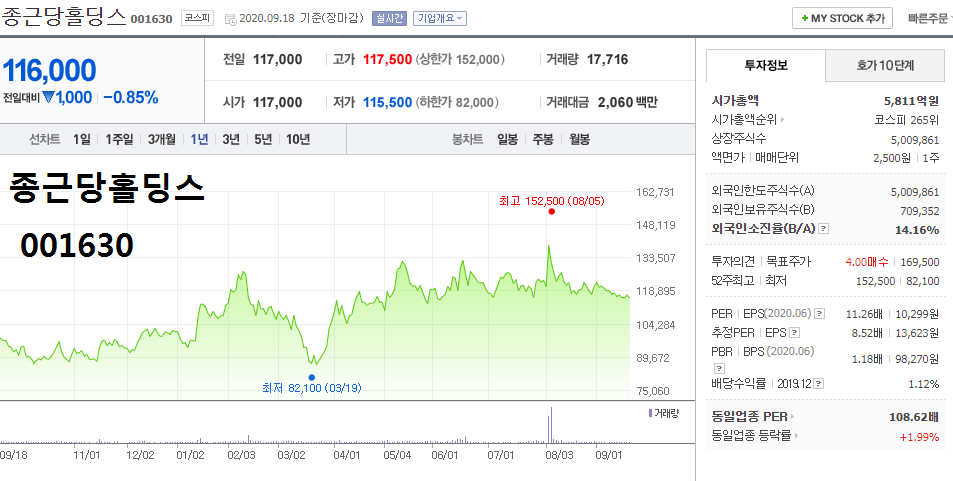 - 명절 선물로 인기가 많은 홍삼과 인삼 등을 판매하는 '정관장'을 자회사로 두어 추석 관련주 중 대장주 움직임 부각