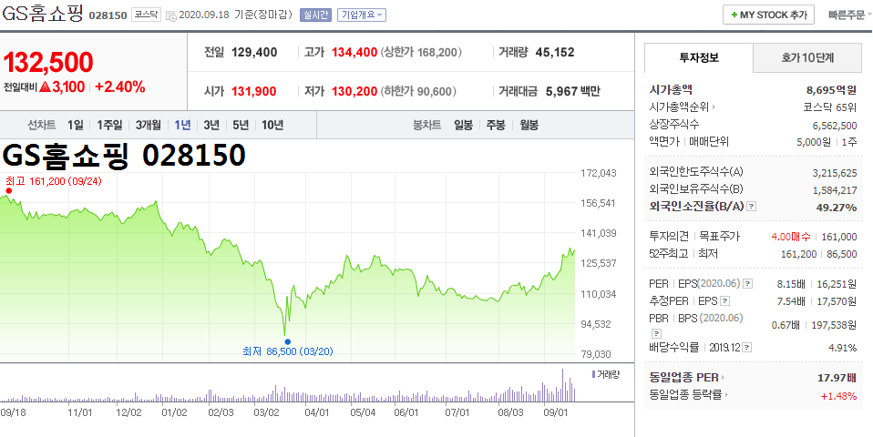 - 2020.09.19 GS홈쇼핑 목표주가 상향, 코로나 19로 비대면 소비 늘어 수혜 예상