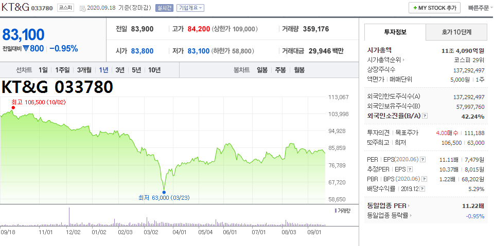 - 선물 대장주 ▲KT&G 033780