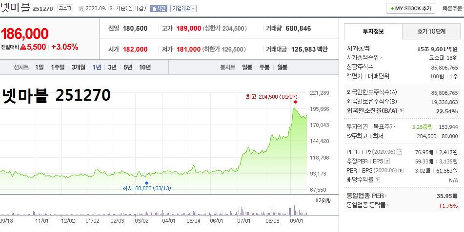 - 코로나 19 장기화와 더불어 언택트·온라인 시장이 활성화됨에 따라 온라인, 모바일 게임 소프트웨어를 개발하고 서비스 사업 진행 중, 게임·뉴딜펀드 관련주 중 대장주 움직임 부각