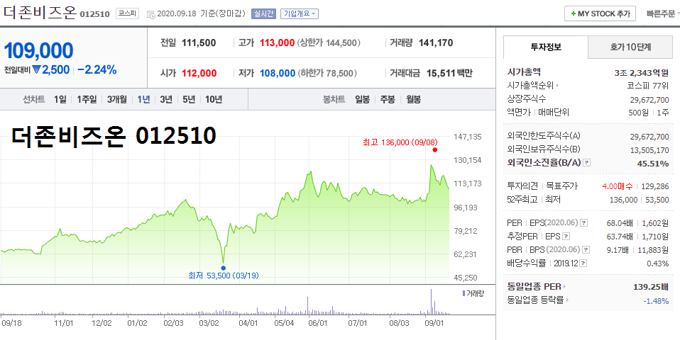 - 2020.09.0 문재인 다녀간 더존비즈온, K-뉴딜 지수 발표 후 주가 급등