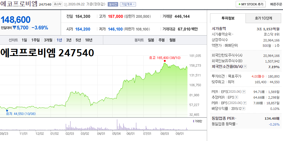 ▲에코프로비엠 (247540) 주가