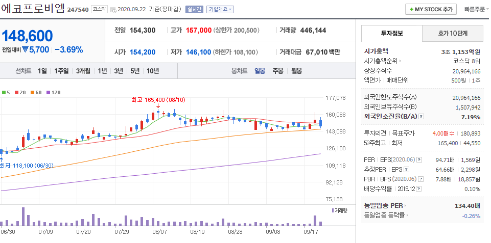 안녕하세요 주식 알려주는 미스터 훈입니다. 이번 글은 '에코프로비엠 주가 전망'에 대해 소개하려고 합니다.