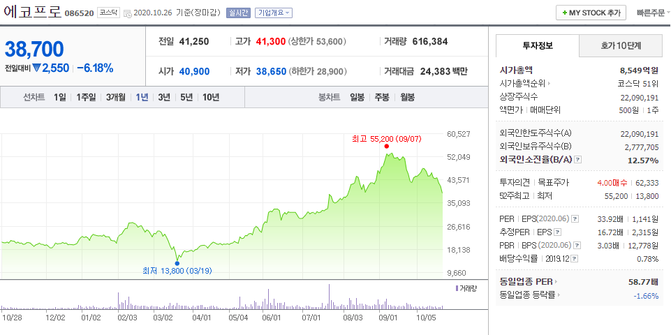 ⑥ 에코프로 086520