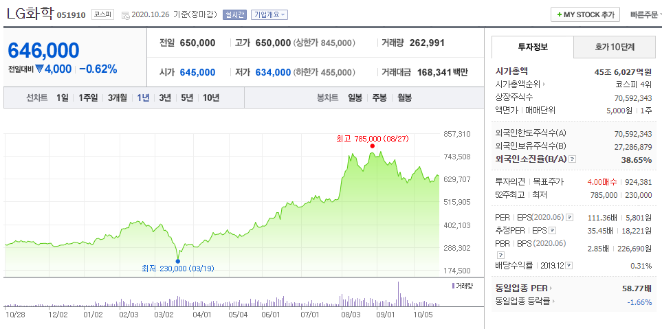 ④ LG화학 051910