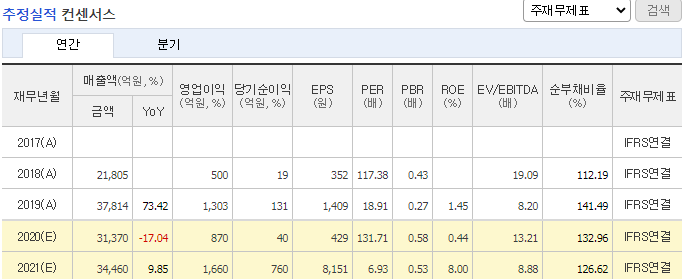 *2020년 예상 매출액 3조 1,370억 원 / 영업이익 870억 원 / 당기순이익 40억 원