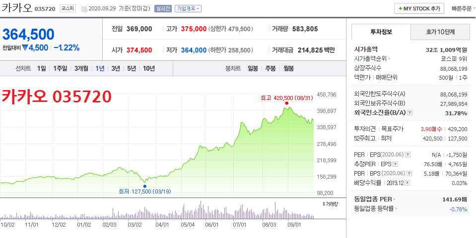 - 카카오뱅크의 이름과 같이 제일 높은 지분율 33.54%에 해당하는 주식 1억 2240만 주 가량을 보유 중이므로 카카오뱅크 관련주 중 대장주 움직임 부각