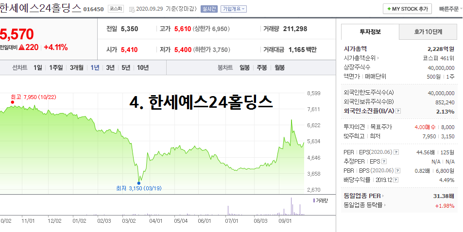 4대 금융지주(신한, KB, 하나, 우리)의 시가총액(43조 4237억 원ㆍ29일 기준)과 맞먹는 수준이다.