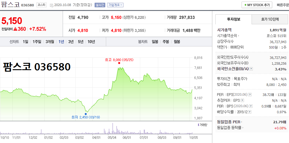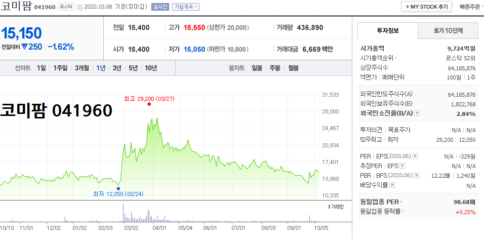 ▲위 주가 차트는 네이버 홈페이지에서 무료로 확인 가능합니다! (여러분도 네이버 홈페이지에서 코미팜의 주가 차트를 무료로 확인해보세요)