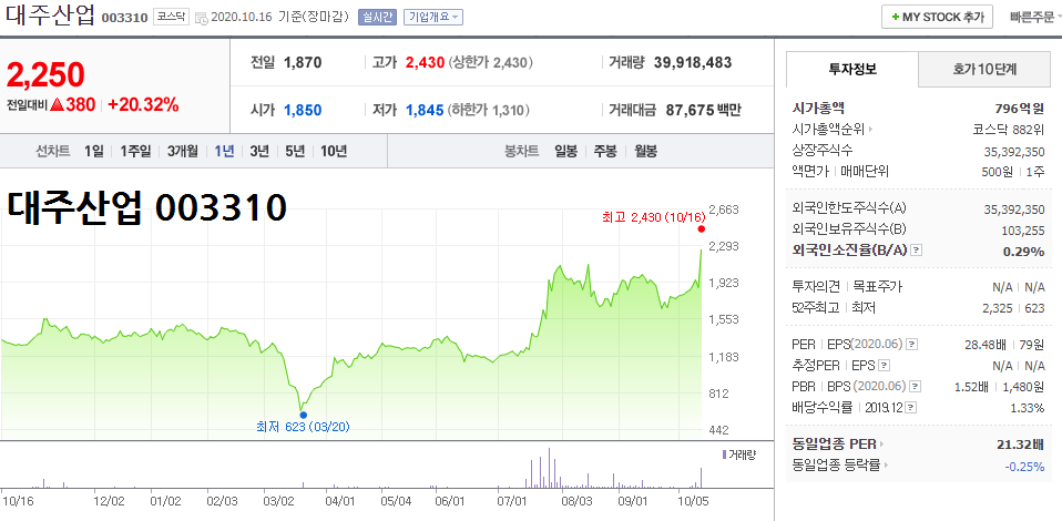 대주산업은 세종시와 인접한 충남 천안, 서천 장항에 공장을 보유하고 있어 세종시 관련주 움직임 부각