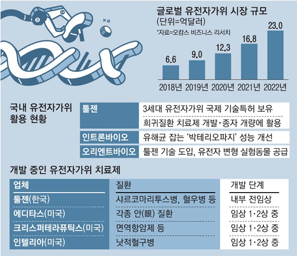 끈임없이 성장중인 유전제치료제 시장, 특히 주목할 바이오 분야인 '유전자 가위 관련주' 종목들에 많은 관심이 쏠리고 있다.