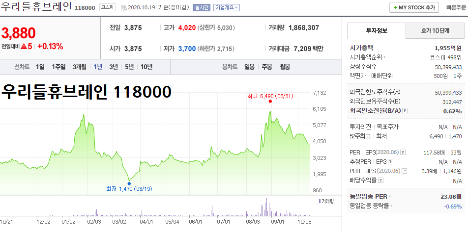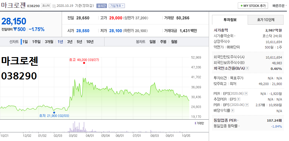 | 마이크로바이옴 관련주 대장주 TOP 7 총정리 (0) | 2020.10.20 |