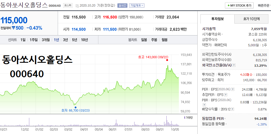 ⑤ 동아쏘시오홀딩스 000640