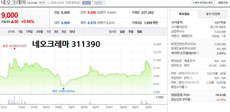 → 정부가 12조원을 투입, 마이크로바이옴 등 5대 그린바이오 신산업을 2030년까지 2배 이상으로 키운다는 소식이 전해지며 네오크레마가 세계 최초 유기농 갈락토올리고당(GOS) 개발, 마이크로바이옴 관련주 중 대장주 움직임 부각
