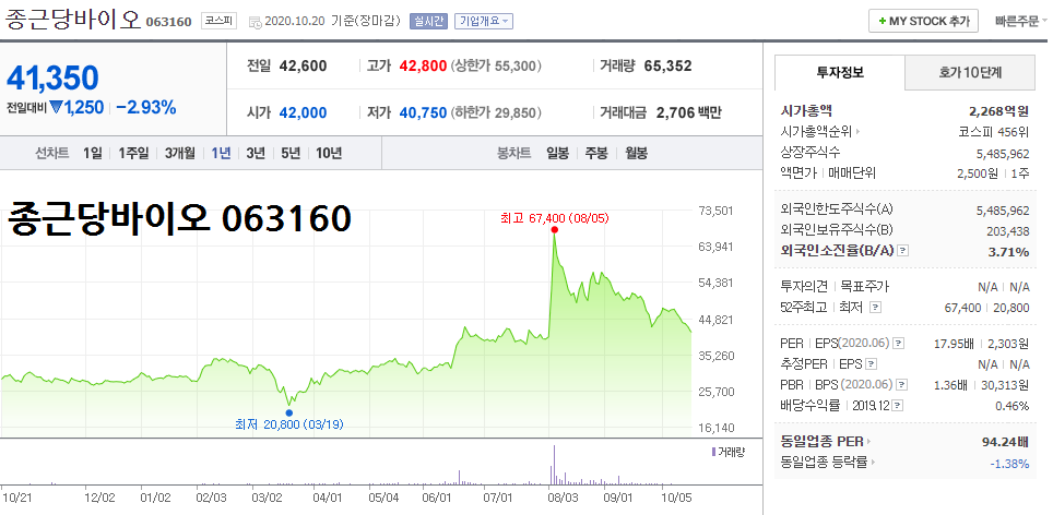 ⑦ 종근당바이오 063160