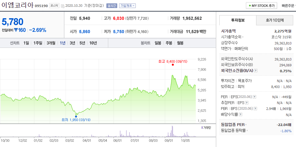 ⑤ 이엠코리아 095190