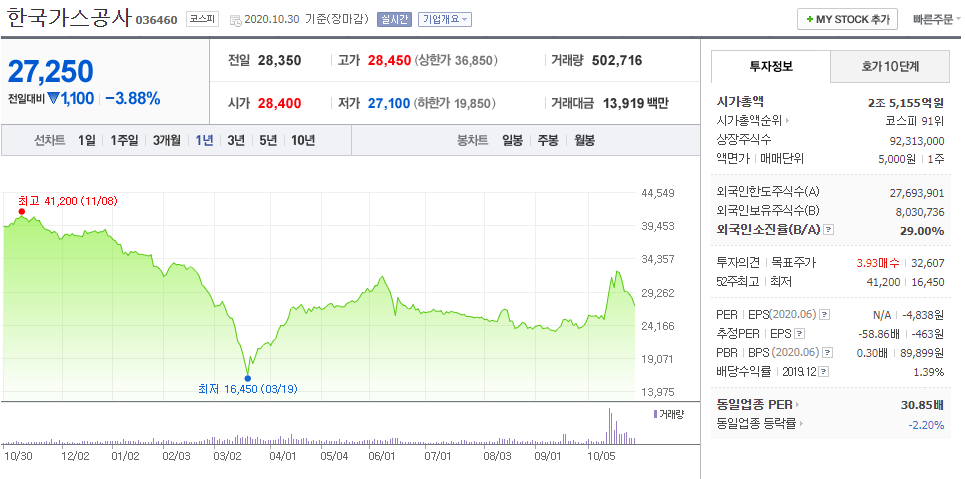 ④ 한국가스공사 036460