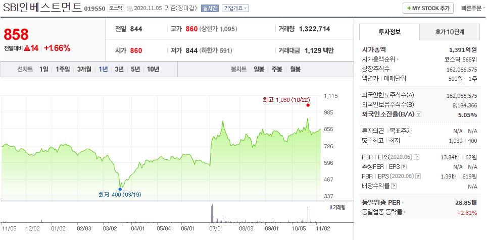 ⑤ SBI인베스트먼트 019550