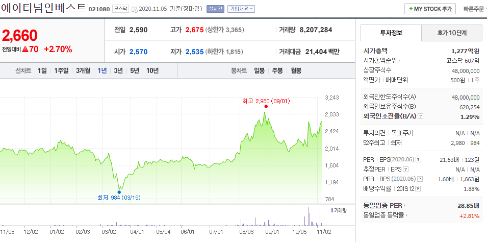 ② 에이티넘인베스트 021080