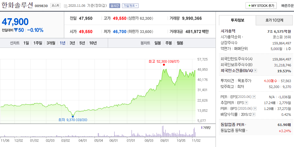 ⑤ 한화솔루션 009830