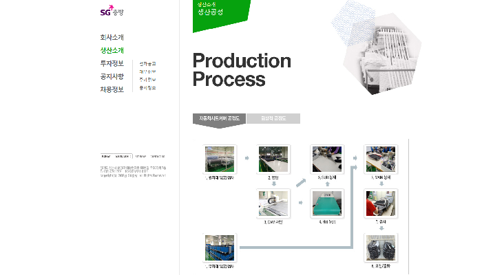 SG충방은 1954년 설립된 자동차 시트, 커버 제조 및 판매사업을 영위하는 회사. SG그룹 계열회사로서 동사를 제외하고 총 34개 사가 있으며 베트남 법인을 소유 중으로 RCEP 관련주 움직임 부각