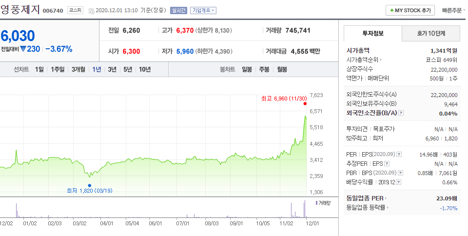 영풍제지는 화섬, 면방업계의 섬유봉, 실패의 원자재인 지관 용원지와 골판지상자용 라이너 원지를 생산하는 회사로 골판지 관련주 움직임 부각